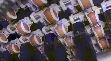鸡蛋非常易碎,轻微磕碰就有可能造成裂痕,甚至肉眼不可见,但时间一久便会形成黑印,直接影响品质。所以必须对蛋壳进行适宜力度的全方位敲击,测量蛋壳强度,并通过数据回馈判定是否合格。
